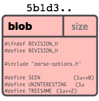 每个对象(object) 包括三个部分:类型,大小和内容。大小就是指内容的大小,内容取决于对象的类型,有四种类型的对象:"blob"、"tree"、 "commit" 和"tag"。